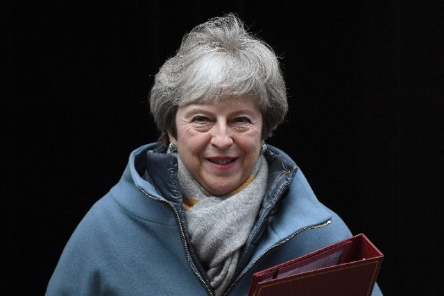 1月21日,在英國倫敦,英國首相特雷莎·梅離開唐寧街10號前往議會下院。(新華社發,蒂姆·愛爾蘭攝)