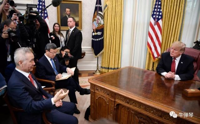 隨后,在白宮橢圓形辦公室,美國總統特朗普會見了劉鶴副總理。