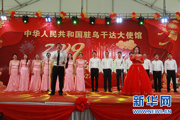 1月27日,在烏干達(dá)坎帕拉,人們在中國駐烏干達(dá)使館春節(jié)招待會(huì)上表演。 新華社記者 張改萍 攝