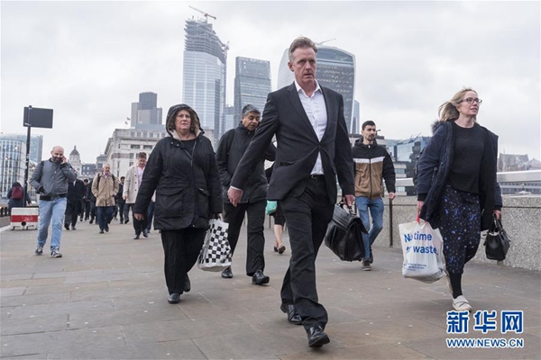 這是3月6日,在英國倫敦,人們從通往金融城的倫敦橋上經過。 新華社發(史蒂芬·程 攝)