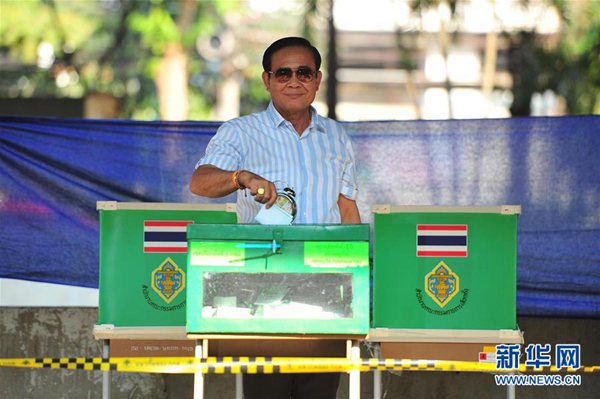 泰國總理巴育8時左右前往曼谷的一處投票站,排隊等候投票。他對媒體說,希望泰國人民參與大選投票,合理行使選舉權(quán),團(tuán)結(jié)一致,共同解決國家所面臨的問題。