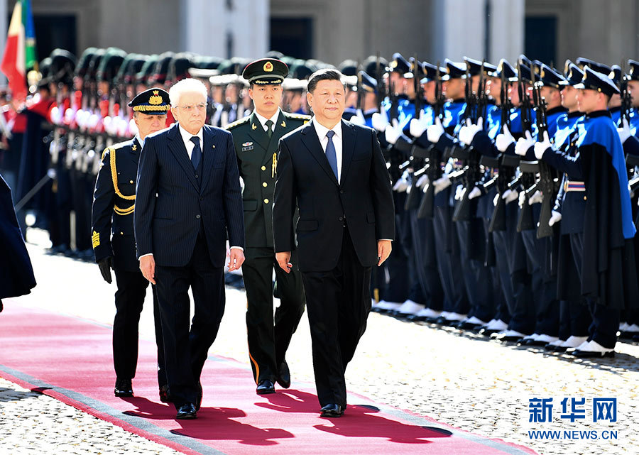 3月22日,國家主席習近平在羅馬同意大利總統馬塔雷拉舉行會談。會談前,馬塔雷拉總統為習近平舉行隆重歡迎儀式。新華社記者 謝環馳 攝
