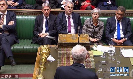 3月29日,在英國倫敦,英國首相特雷莎·梅出席議會下院辯論。英國議會下院29日投票否決了“脫歐”協議關鍵部分,這進一步增加了英國“脫歐”的不確定性。新華社發(英國議會攝影師馬克·達菲攝)
