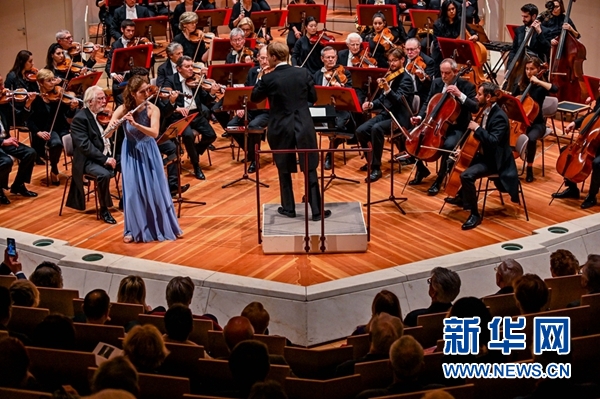 4月13日,尼娜·布赫霍爾策在德國柏林交響樂團(tuán)“明日之星”演奏會上演奏。 新華社記者 連振 攝