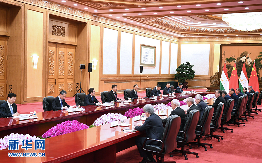 習近平指出,中方堅定支持拉赫蒙總統著眼塔吉克斯坦國家發展和民生福祉所執行的內外政策,愿同塔方加強合作,維護好兩國共同的戰略、安全、發展權益。雙方要深化共建“一帶一路”倡議同塔吉克斯坦2030年前國家發展戰略對接,加強貿易、投資、金融、互聯互通、人文、安全等領域合作。要提升口岸通關、運輸能力,為兩國擴大貿易提供便利條件。中方鼓勵有實力的中國企業赴塔吉克斯坦投資興業,助力塔方工業化進程。雙方要共同辦好塔吉克斯坦文化節。中方愿同塔方加強上海合作組織內協調,落實好青島峰會成果。中方支持塔方辦好今年亞洲相互協作與信任措施會議峰會,不斷提升亞信整體合作水平。