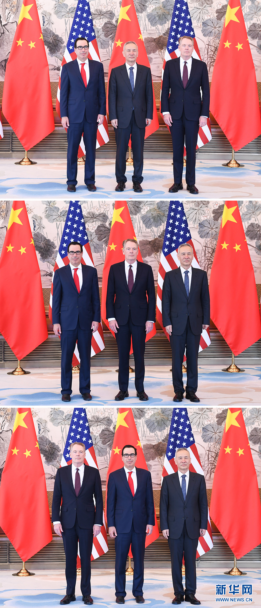 4月30日至5月1日,中共中央政治局委員、國務院副總理、中美全面經濟對話中方牽頭人劉鶴與美國貿易代表萊特希澤、財政部長姆努欽在北京舉行第十輪中美經貿高級別磋商(拼版照片)。 新華社記者申宏、翟健嵐攝