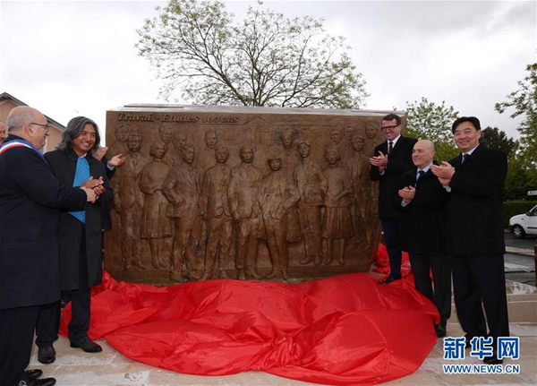 5月4日,為紀念留法勤工儉學運動100周年,大型雕塑《百年豐碑》在法國蒙達爾紀市鄧小平廣場落成。這座高2.9米、寬4.65米的雕塑,以浮雕形式,呈現十多位留法勤工儉學代表人物。