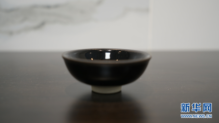 2019中日陶瓷名家精品聯展上展出的“烏金”(屬于建盞的一種)。梁賽玉 攝