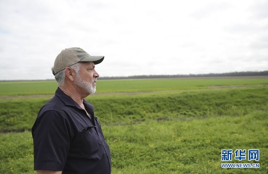 農(nóng)場主雷·謝克斯奈德在美國路易斯安那州西巴吞魯日堂區(qū)的農(nóng)場農(nóng)田邊(3月1日攝)。 新華社記者 王迎 攝