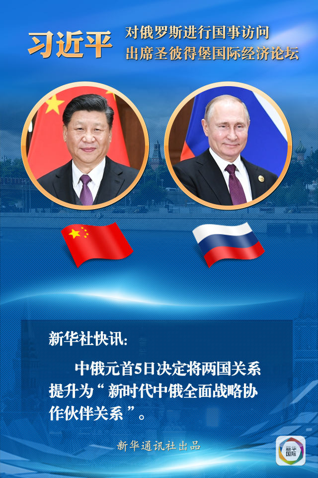 新華社快訊:中俄元首5日決定將兩國關系提升為“新時代中俄全面戰略協作伙伴關系”。