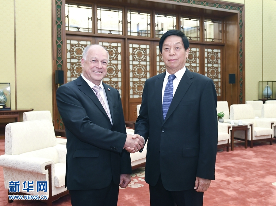 6月10日,全國人大常委會委員長栗戰(zhàn)書在北京會見以奧地利聯邦議會議長英戈·阿佩為團長的奧中友協高級代表團。 新華社記者 燕雁 攝