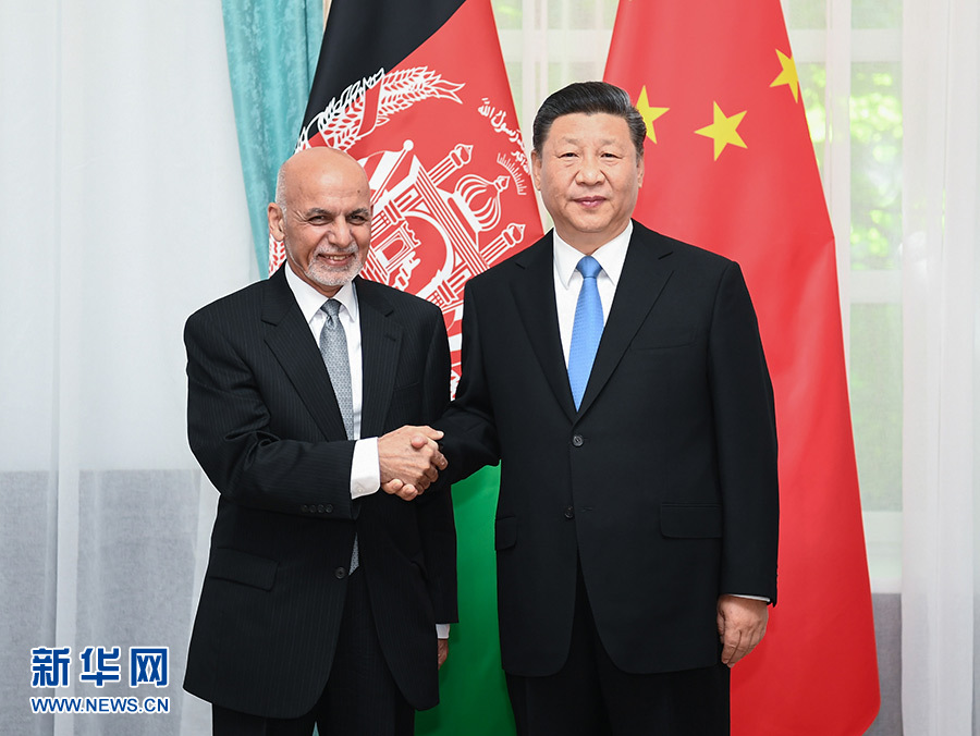 6月13日,國家主席習近平在比什凱克會見阿富汗總統加尼。 新華社記者 謝環馳 攝