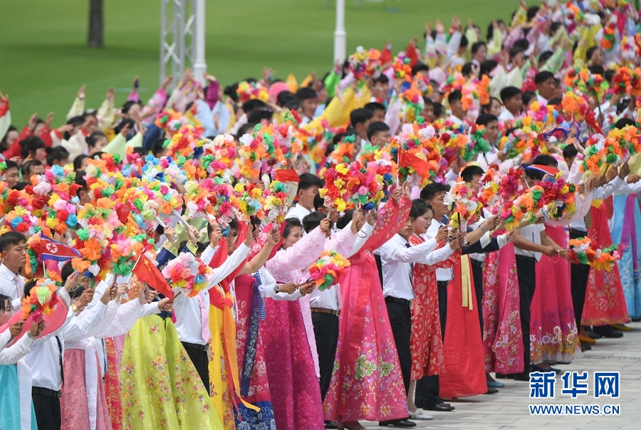 6月20日,中共中央總書記、國家主席習近平乘專機抵達平壤,開始對朝鮮民主主義人民共和國進行國事訪問。這是朝鮮民眾在錦繡山太陽宮廣場熱烈歡迎習近平。新華社記者 申宏 攝