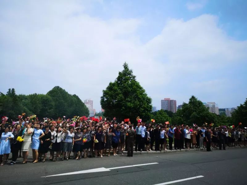 到處都是熱情的笑臉,友好的歡呼聲不絕于耳。習近平和金正恩向歡迎的人群頻頻揮手致意。