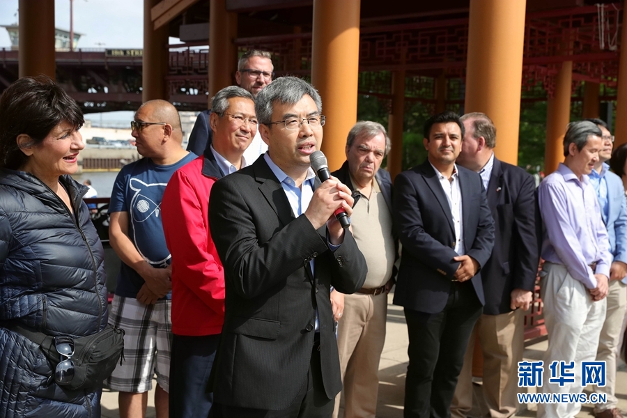 中國駐芝加哥總領(lǐng)事趙建在龍舟賽開幕式上說,比賽對于傳承中華文化、促進(jìn)華人社區(qū)與其他社區(qū)交流意義重大。記者 汪平 攝