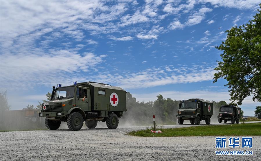 這是7月5日在德國費爾德基興訓練基地拍攝的中德“聯合救援-2019”衛勤實兵聯合演習整合訓練現場。新華社記者 連振 攝