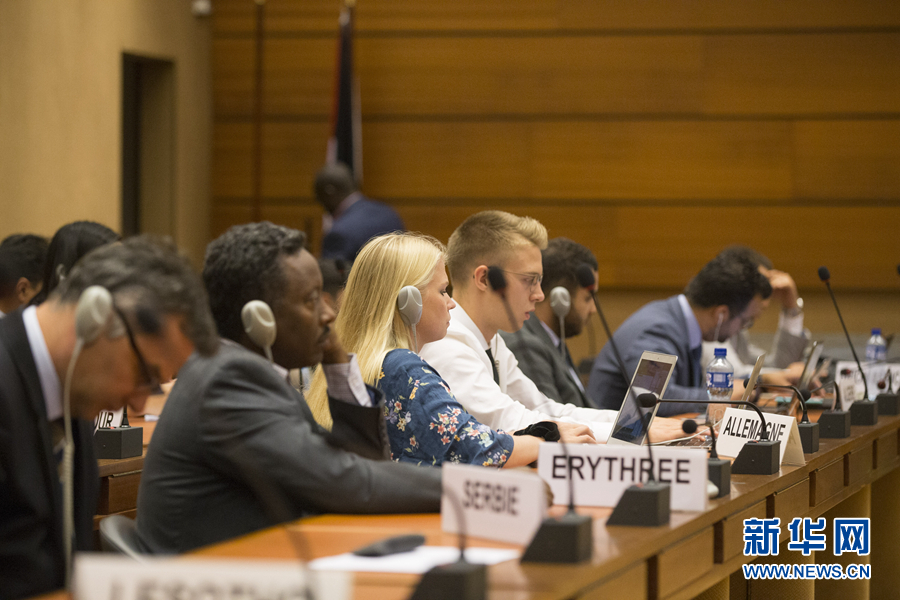 7月9日,在瑞士日內瓦聯合國萬國宮,與會嘉賓出席“發展對享有所有人權的貢獻”主題邊會。新華社記者 徐金泉 攝