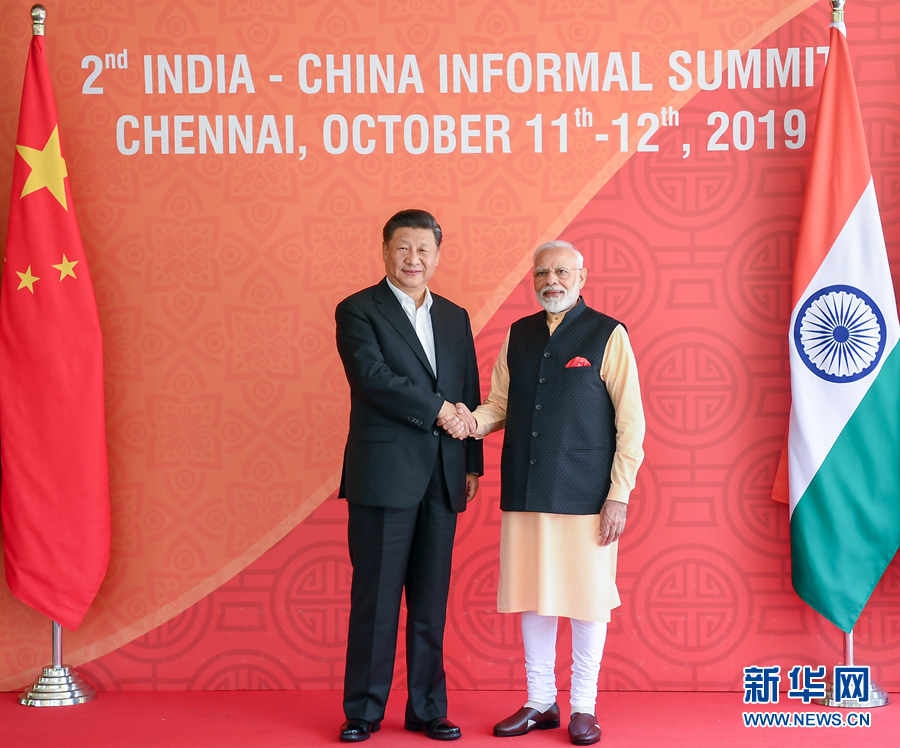 10月12日,國家主席習近平在金奈同印度總理莫迪繼續舉行會晤。 新華社記者 王曄 攝