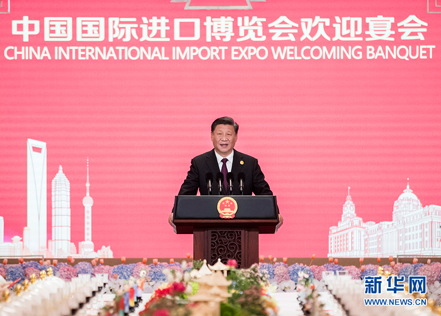 11月4日晚,國(guó)家主席習(xí)近平和夫人彭麗媛在上海和平飯店舉行宴會(huì),歡迎出席第二屆中國(guó)國(guó)際進(jìn)口博覽會(huì)的各國(guó)貴賓。這是習(xí)近平發(fā)表致辭。 新華社記者 王曄 攝