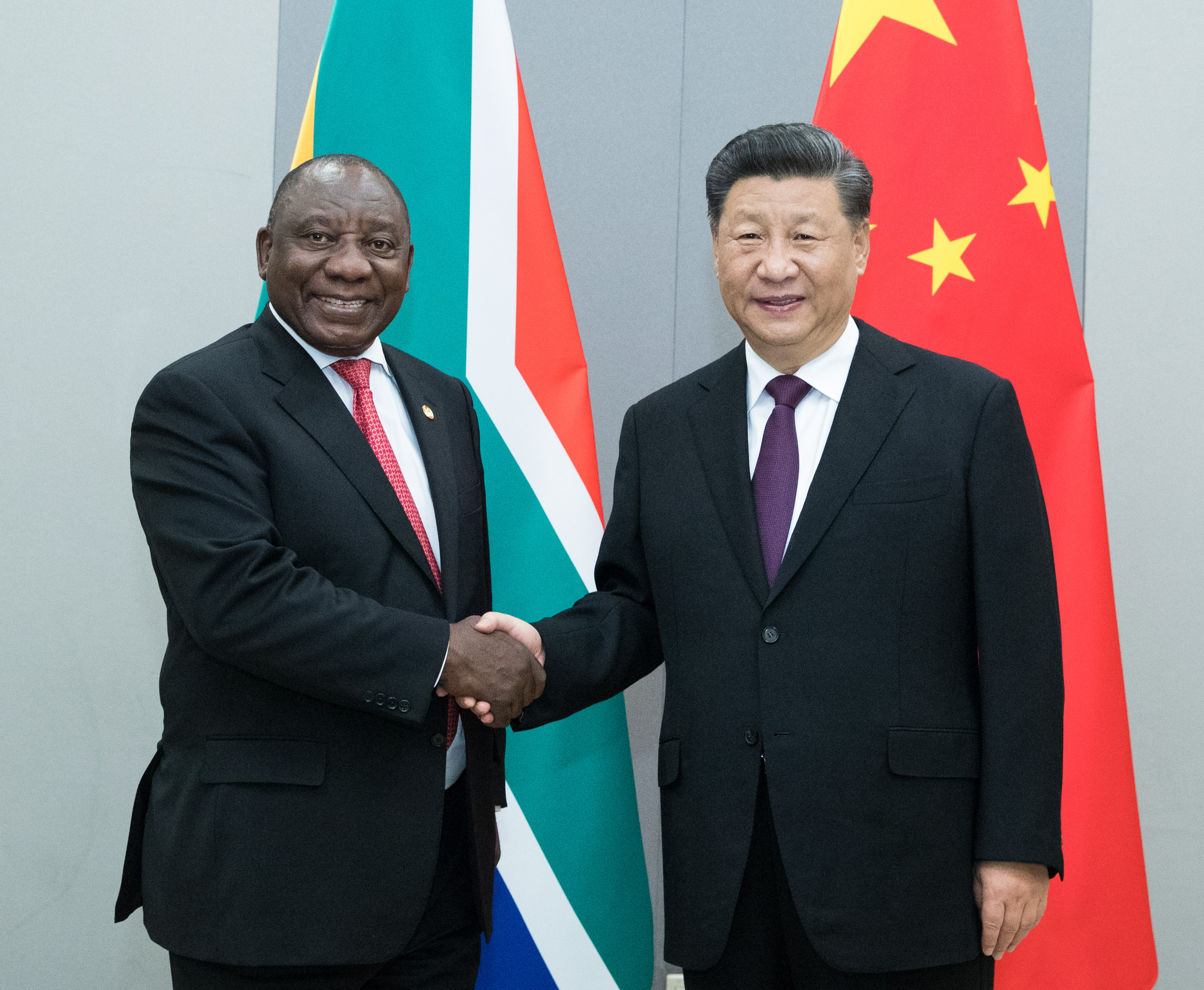 ▲當地時間11月14日,國家主席習近平在巴西利亞會見南非總統拉馬福薩。新華社記者王曄攝