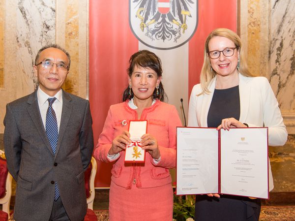 新華網維也納2月4日電(記者 于濤)1月30日,奧地利經濟部舉行2019年度國家最高經濟貢獻勛章頒獎儀式,旅奧華人楊麗博士榮獲奧地利共和國金質貢獻勛章。