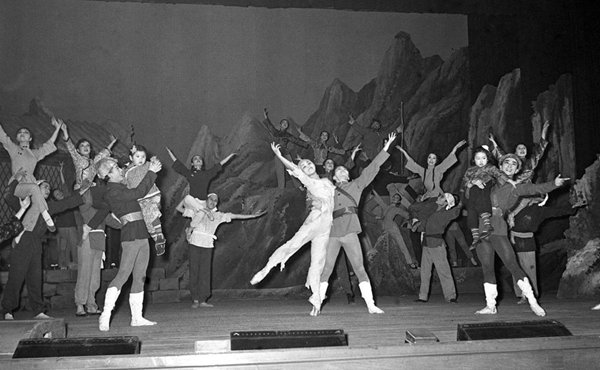 1973年2月10日,日本松山芭蕾舞團的演員和中國舞劇團的演員,在北京天橋劇場同臺演出《紅色娘子軍》。 新華社記者王景英攝
