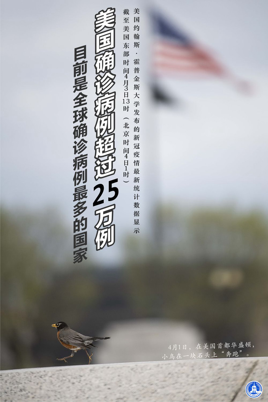 新華社紐約4月3日電 美國約翰斯·霍普金斯大學3日發(fā)布的新冠疫情最新統(tǒng)計數(shù)據(jù)顯示,美國確診病例超過25萬例。美國目前是全球確診病例最多的國家。