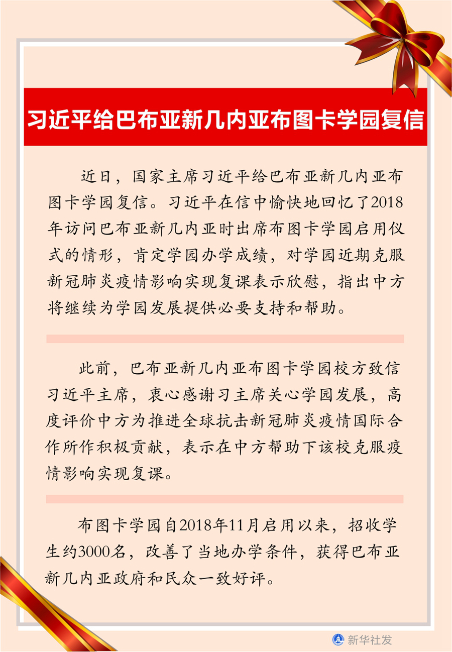 此前,巴布亞新幾內亞布圖卡學園校方致信習近平主席,衷心感謝習主席關心學園發展,高度評價中方為推進全球抗擊新冠肺炎疫情國際合作所作積極貢獻,表示在中方幫助下該??朔咔橛绊憣崿F復課。