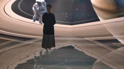 你可以置身蒼茫大漠中的火箭發(fā)射基地,感受火箭從腳下的大屏幕震撼升空;你可以穿過空間隧道,遨游眼睛形狀的宇宙星河,和宇航員來個親切擁抱;你還可以站在海面上,看巨大的鯨魚騰空躍出水面……