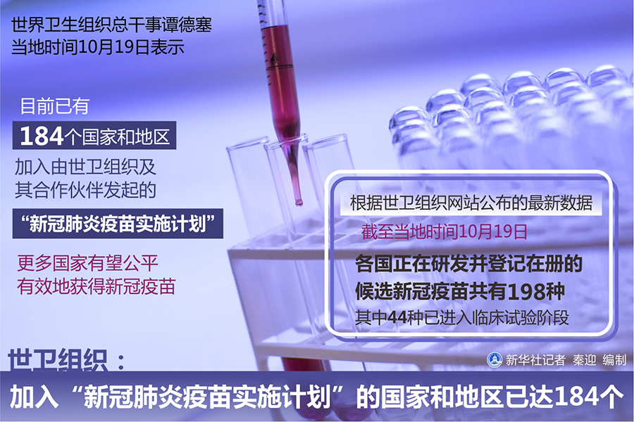 世衛組織:加入"新冠肺炎疫苗實施計劃"的國家和地區已達184個-新華網