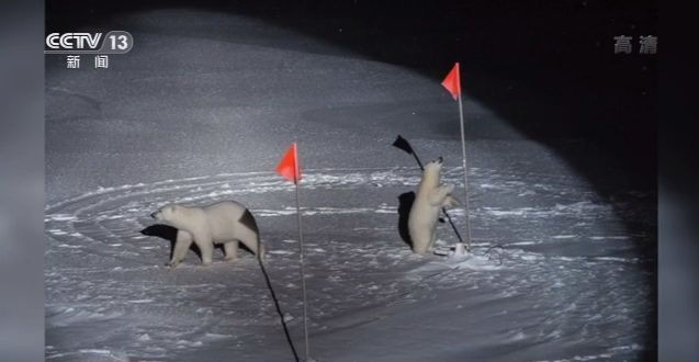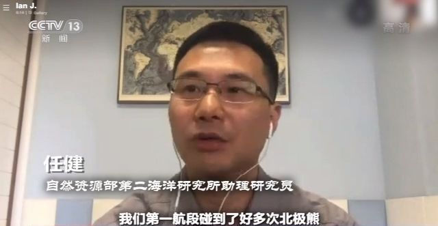 中國自然資源部第二海洋研究所助理研究員 任健:我們第一行段碰到了好多次北極熊,有幾次是特別近的,就是媽媽帶著寶寶,就在船邊,它們嗷嗷在那邊叫。一方面挺可愛,另一方面也挺可憐,因為他們肚子餓了,但是這種情況下,你就堅決不能喂他們吃的。因為喂了它了之后它就不會走了,不會走的話,你就沒法下去采樣或者作業。