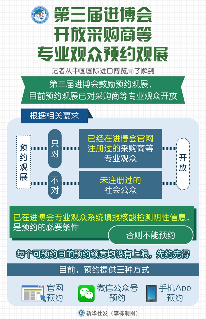 新華社上海10月30日電(記者周蕊)記者從中國國際進口博覽局了解到,第三屆進博會鼓勵預約觀展,目前預約觀展已對采購商等專業觀眾開放。