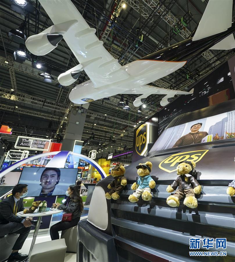 11月5日拍攝的第三屆進(jìn)博會(huì)服務(wù)貿(mào)易展區(qū)UPS展臺(tái)。新華社記者 張豪夫 攝