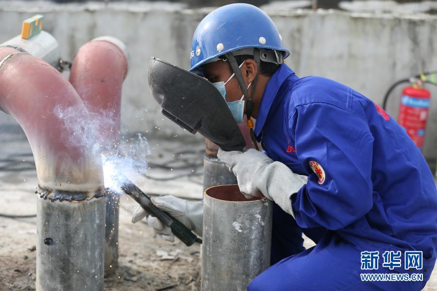 覺泰昂是正在接受項目組培訓的當地工人之一。他剛來項目組上班時僅是一名普通的安裝工,因為他對電焊感興趣,又掌握一些基本的焊接知識,項目組的師傅就開始教他做些簡單的焊接工作。教覺泰昂電焊技能的師傅田志章說:“提前幫他調好尺寸,接好焊點,每焊兩厘米左右就幫他檢查一下,一般的支架和管道焊接他已經能做得很好。”