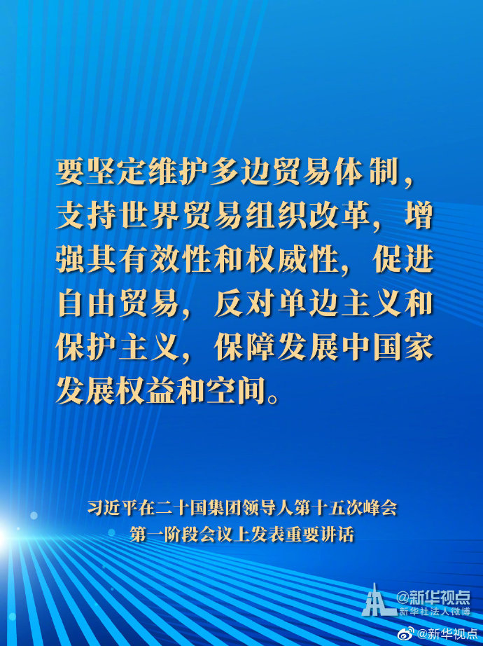 習近平在二十國集團領(lǐng)導人第十五次峰會第一階段會議講話要點
