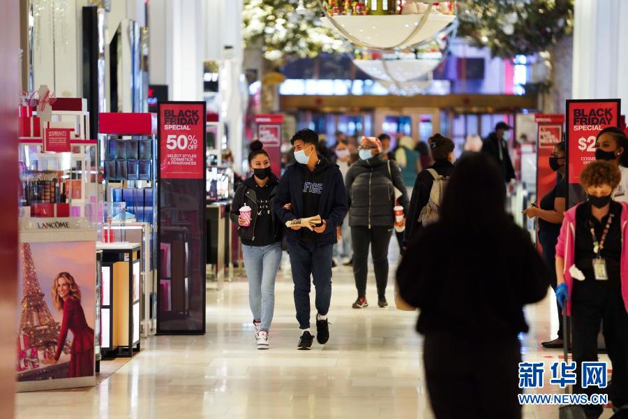 受新冠疫情影響,今年美國“黑色星期五”購物促銷日前往商店購物的人數較往年減少。