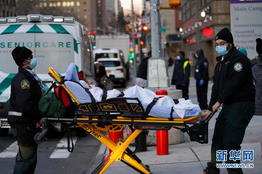 12月8日,醫(yī)護(hù)人員在美國紐約一家醫(yī)院外運(yùn)送病人。美國約翰斯·霍普金斯大學(xué)8日發(fā)布的新冠疫情最新統(tǒng)計數(shù)據(jù)顯示,美國累計確診病例超過1500萬例。新華社記者 王迎 攝