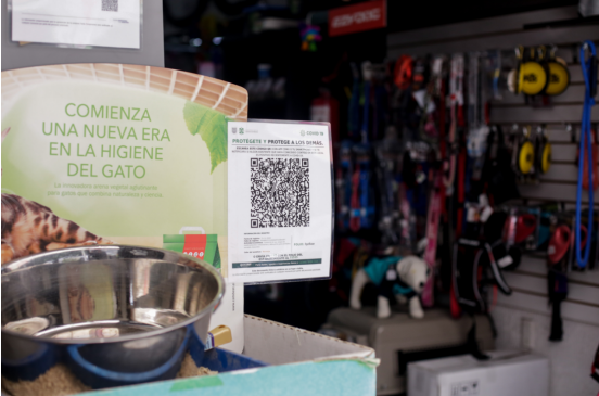 記者在墨西哥城街頭看到,一些銀行、電影院、博物館、購物中心等場所入口顯眼處貼有二維碼,民眾掃碼數秒后,便會生成地點和時間等基本數據。