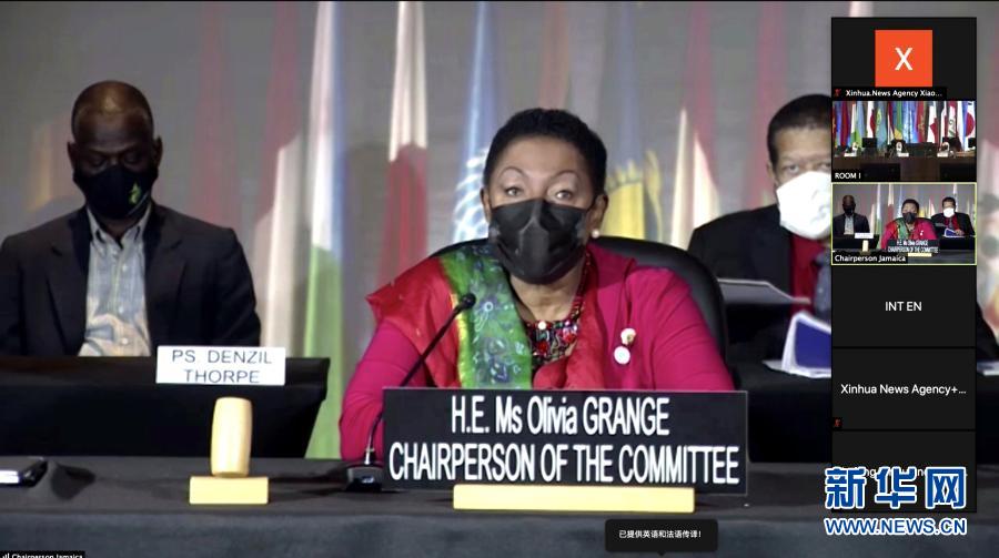 這張12月18日的視頻截圖顯示的是,聯合國教科文組織保護非物質文化遺產政府間委員會主席奧利維婭·格蘭奇在法國巴黎參加線上視頻會議。新華社發(fā)