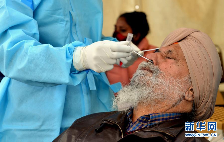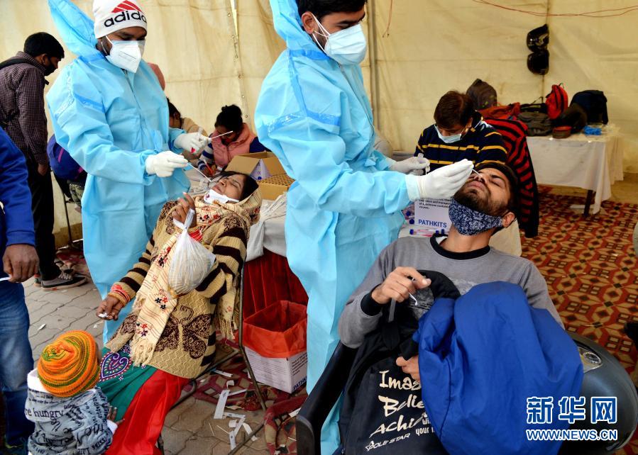 12月19日,乘客在印度德里一處巴士終點站接受新冠病毒檢測取樣。新華社發(帕塔·薩卡爾攝)