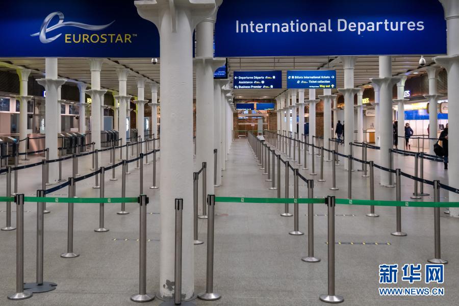 這是12月21日在英國(guó)倫敦圣潘克拉斯火車站拍攝的空蕩蕩的“歐洲之星”國(guó)際出發(fā)大廳。新華社發(fā)(蒂姆·愛(ài)爾蘭攝)