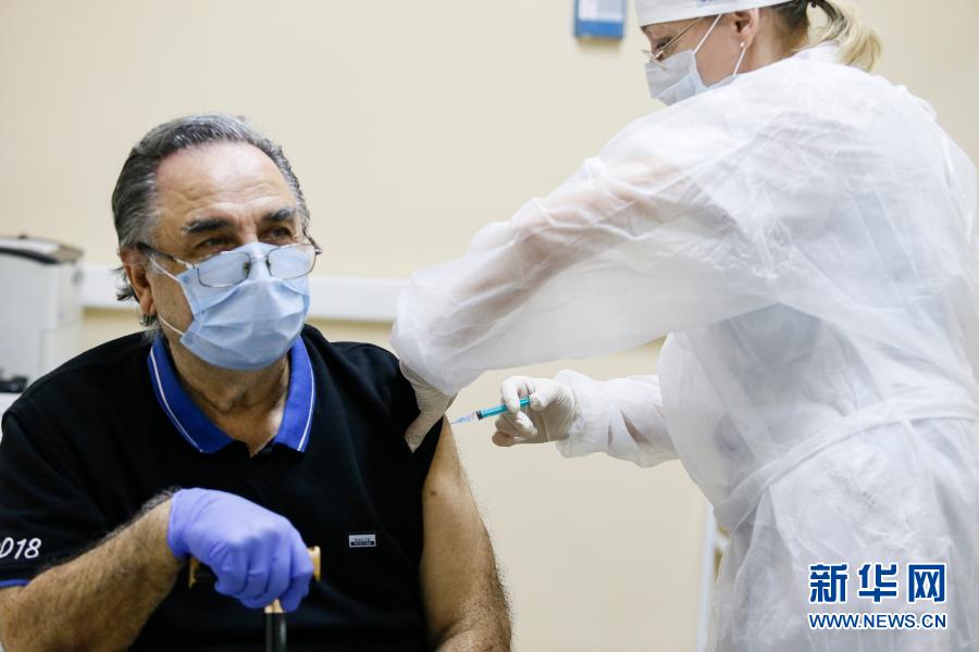 12月30日,在俄羅斯首都莫斯科,一名醫護人員為一名老人接種疫苗。新華社發(亞歷山大攝)