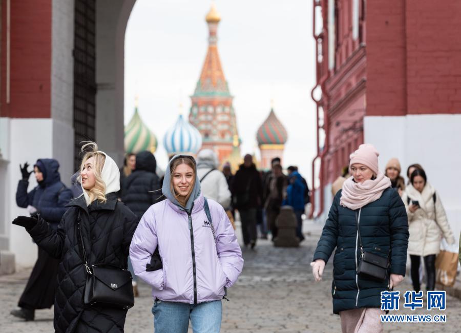 3月23日,在俄羅斯首都莫斯科,人們走在紅場附近。