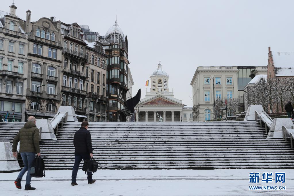 比利時近日迎來春雪,首都布魯塞爾銀裝素裹,景色別致。