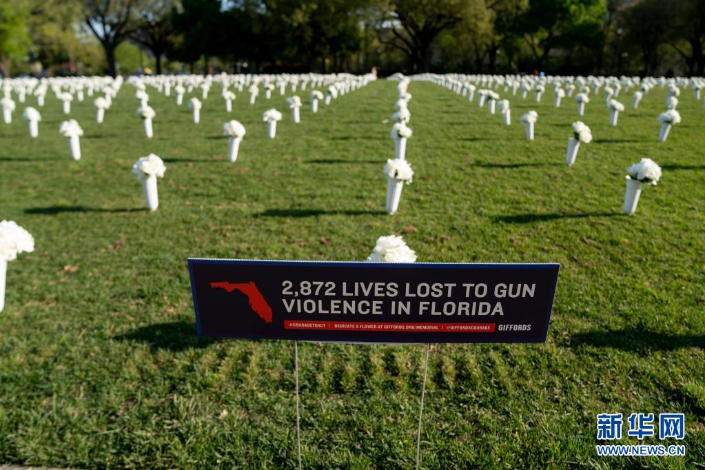 當(dāng)日,四萬朵白色絹花被擺放在國會大廈與華盛頓紀(jì)念碑之間的國家廣場草坪上,以紀(jì)念在全美槍擊事件中喪生的人們。據(jù)美國媒體報道,2020年美國造成四人及以上傷亡的嚴(yán)重槍擊案數(shù)量創(chuàng)下歷史新高,較2019年激增47%。同時,美國槍支銷售數(shù)量也突破歷史紀(jì)錄,民眾對公共安全擔(dān)憂加劇。
