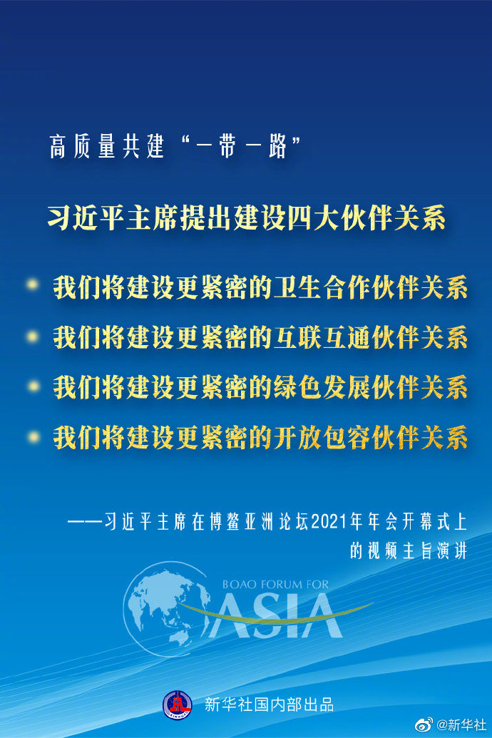 博鰲亞洲論壇2021年年會開幕式20日上午在海南博鰲舉行,國家主席習近平以視頻方式發表主旨演講。針對高質量共建“