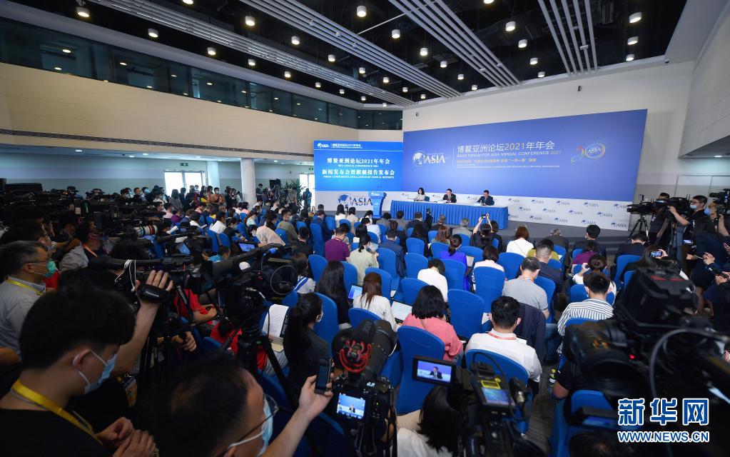 這是博鰲亞洲論壇2021年年會新聞發布會現場(4月18日攝)。新華社記者 郭程 攝