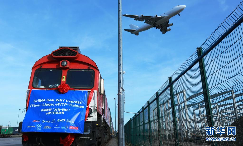 2019年10月25日,滿載著82個標準箱的中歐班列(義烏—列日)“世界電子貿易平臺(eWTP)菜鳥號”首趟列車抵達比利時列日物流多式聯運貨運場站。新華社記者 潘革平 攝