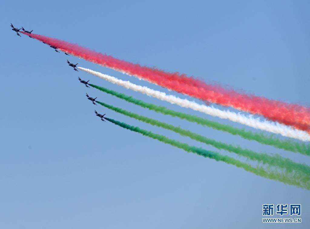 4月25日,意大利“三色箭”飛行表演隊在羅馬舉行的紀念儀式上噴出代表意大利國旗顏色的紅白綠三色煙霧。