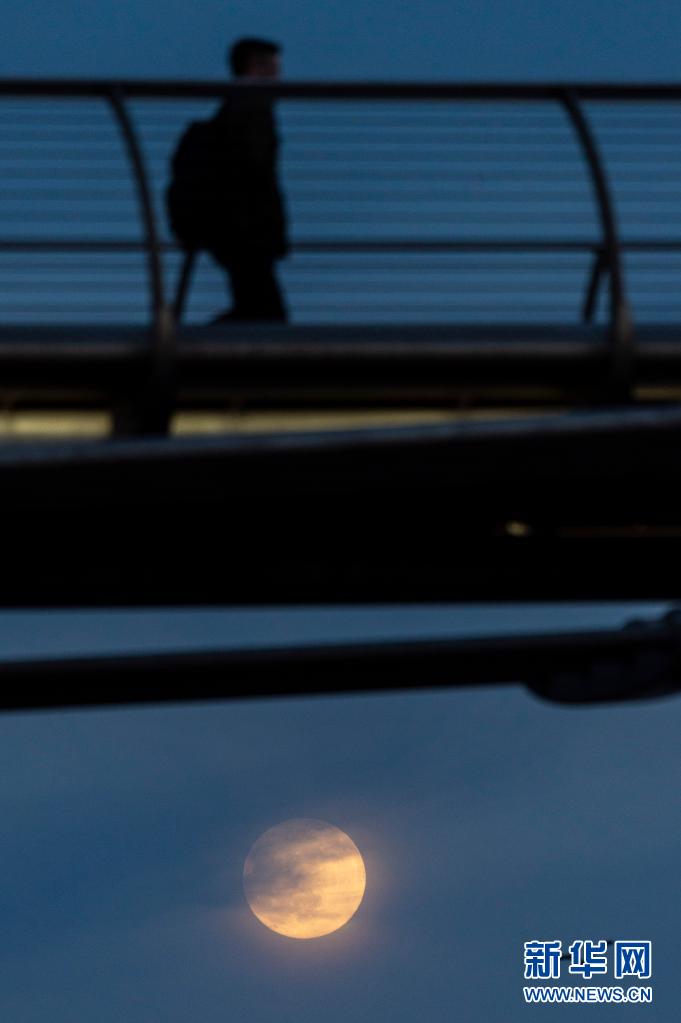 這是4月26日在英國倫敦拍攝的千禧橋附近的“超級月亮”。
